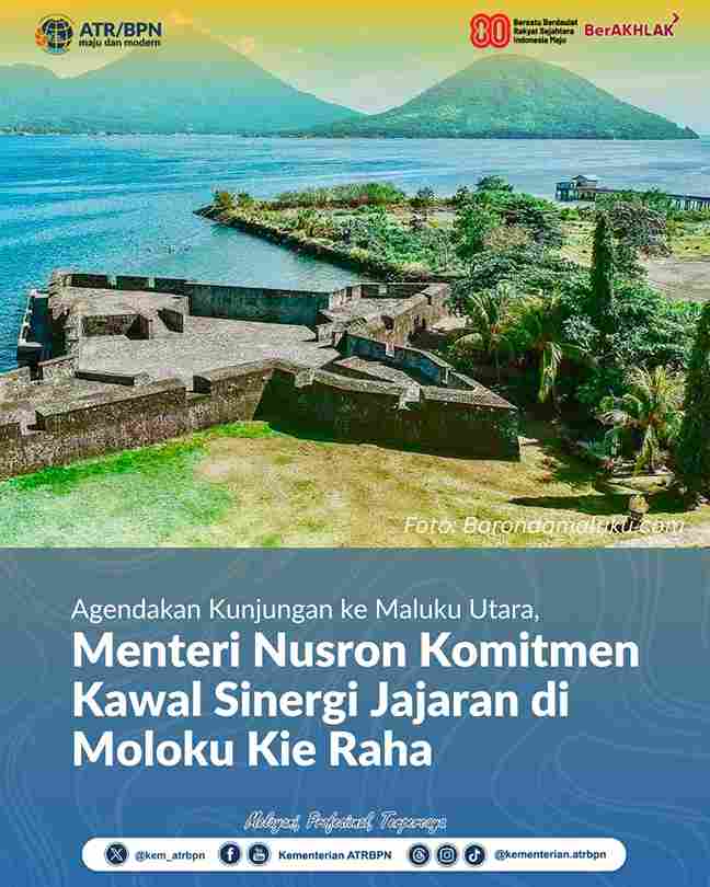 Maluku Utara menjadi provinsi ke-17 yang dikunjungi Menteri Nusron dalam rangka menunjukkan komitmennya mengawal program-program pertanahan dan tata ruang. Hal ini dilakukan karena menurutnya koordinasi erat antara jajaran Kementerian ATR/BPN dan pemerintah daerah merupakan kunci keberhasilan pengelolaan pertanahan dan tata ruang.