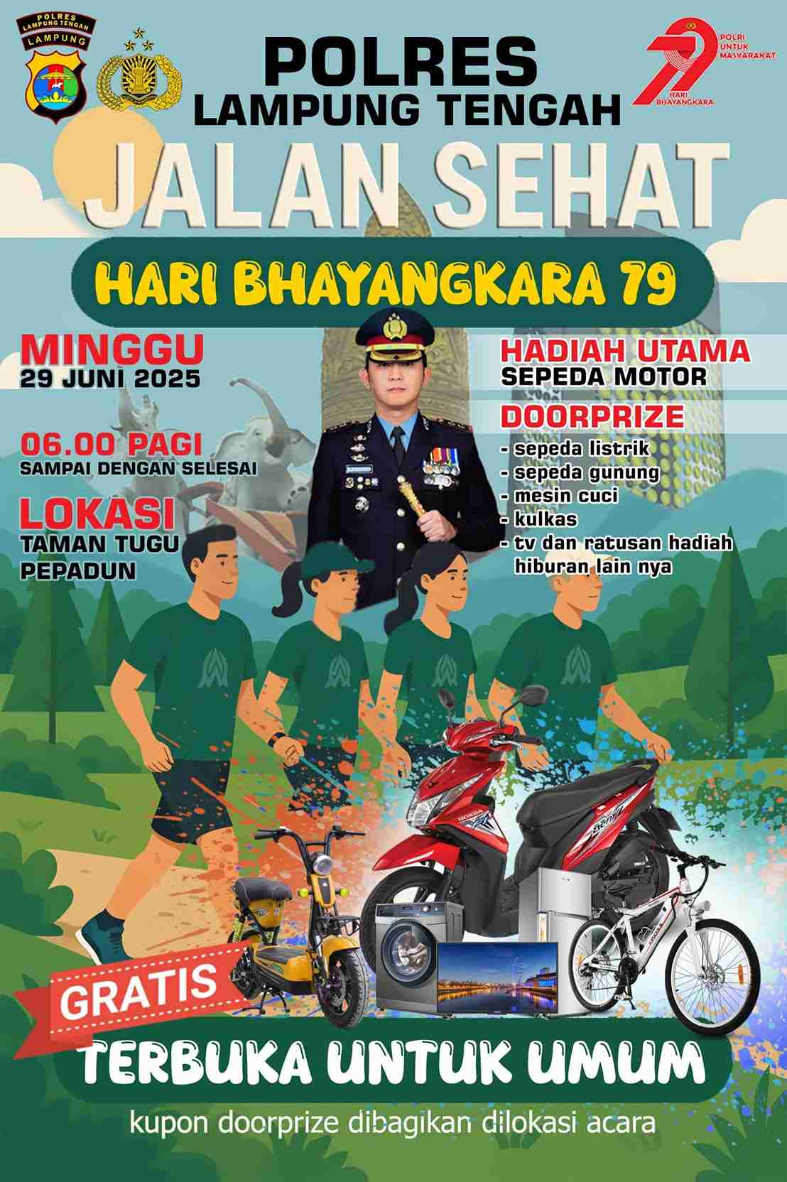 Polres Lampung Tengah Gelar Jalan Sehat Hari Bhayangkara ke-79, Hadiah Utama Sepeda Motor!