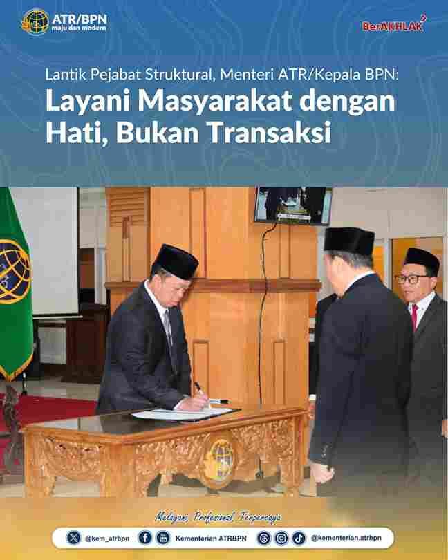 Para pejabat terlantik diingatkan oleh Menteri Nusron untuk menjalani tugas melayani dengan hati dan mendedikasikan diri kepada masyarakat.
