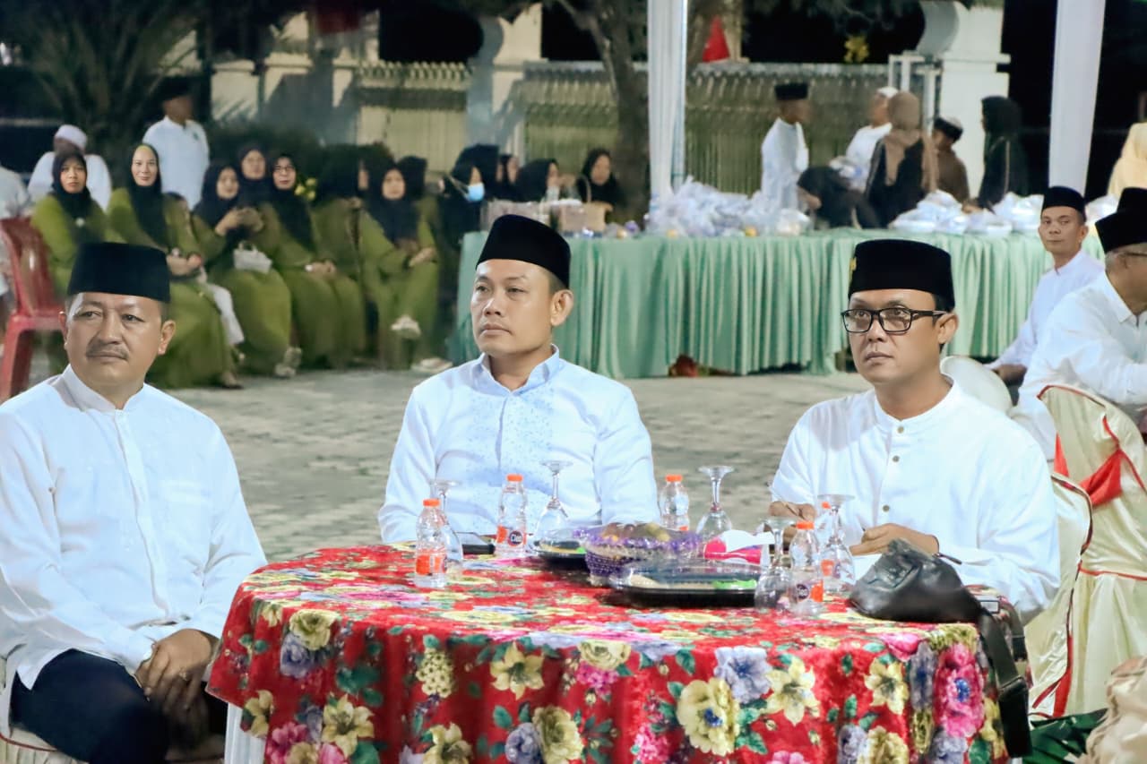 Lampung Tengah, lintas-nusantara.com -Bupati Lampung Tengah, Ardito Wijaya, menghadiri pengajian dalam rangka memperingati Maulid Nabi Muhammad SAW yang digelar di Masjid At-Thohir, Gunung Sugih, pada Minggu (14/09/2025) malam. Acara peringatan Maulid Nabi ini dihadiri Ketua DPRD Lampung Tengah, Febriyantoni, Camat Gunung Sugih beserta Jajaran Forkopimcan, ratusan jamaah, tokoh agama, tokoh masyarakat. Suasana penuh khidmat dengan lantunan shalawat dan tausiah yang menekankan keteladanan Rasulullah SAW.